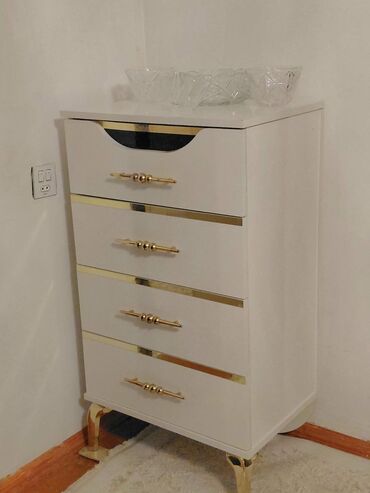 • 1 ədəd komod – 4 çekmece, qızılı xətt və tutacaqlar, yuxarı hissədə dekorativ oyma