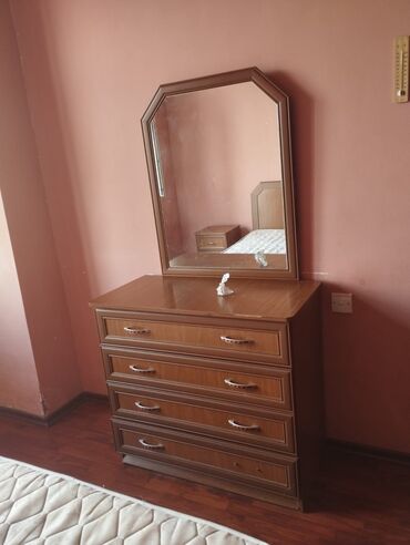 - Şkaf-komod güzgü ilə (4 çekmecə, üstündə iri çərçivəli güzgü)
