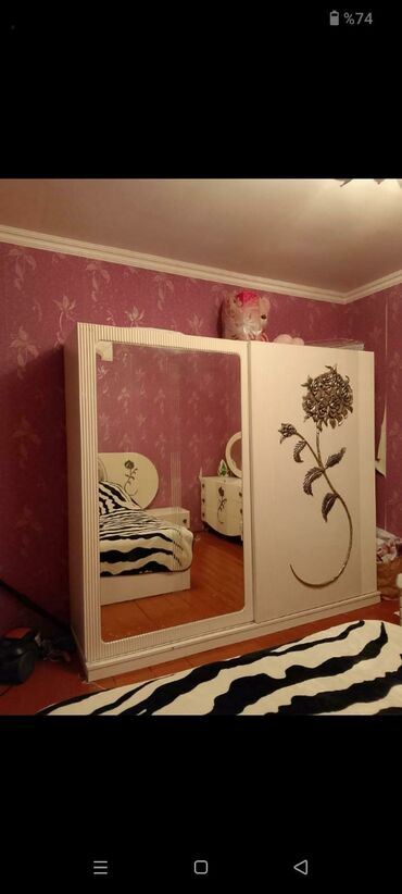 Yataq otağı mebel dəsti – müasir dizayn Tərkib: - 2 qapılı/aynalı şkaf (daxili rəf və asılqan bölmələri) - Geniş çarpayı (başlıqla) - 2 ədəd tumbə - 1 ədəd komod (çəkməcəli) Rəng və üslub variant...