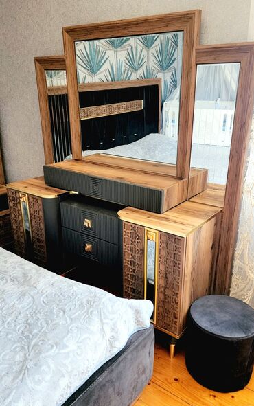 2 ədəd tumba,2 ədəd çarpayı(Matras ile) və 6 qapılı dolab.Yaxsi vəziyyətdedir.Az işlənib(Özüm öz zövqmle ygdrmsam.Masin krasqasi ile renglenib)