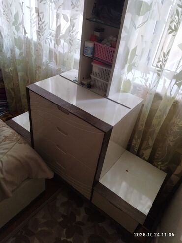 Almaniya mebeli. İşlənmiş mebeldir, lakin yaxşı vəziyyətdədir. 4 çəkməcəyə, 3 laylı güzgüyə malikdir (güzgüdə çat filan yoxdur). P.s: Almaq istəyən özü gəlib aparacaq deyə qiyməti ucuzdur...