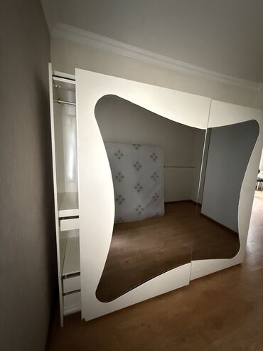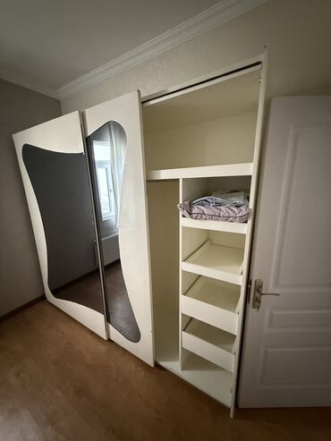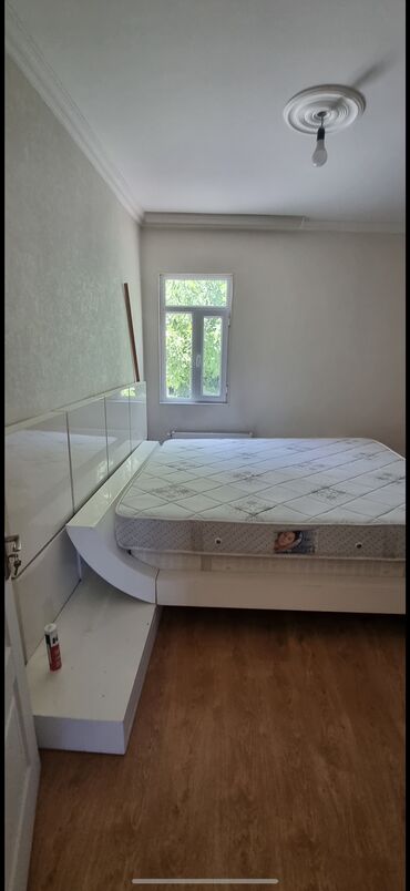 Yataq otağı mebel dəsti 6 qapili,uzun:2,40,carpayi- 180×2.0 - Material: ağac əsaslı, parlaq şpon/qəhvəyi “qoz” teksturası, qara dekorativ elementlər - Komplekt: • 3 qapılı iri şkaf – ortada iki ə...