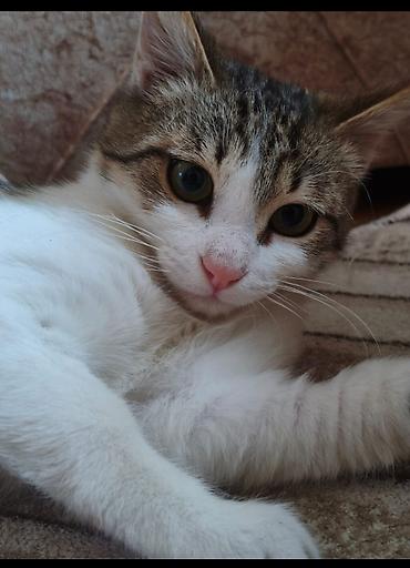 - Şirin, yumşaq tüklü pişik: ağ-qəhvəyi naxışlı kürk, iri ifadəli gözlər, çəhrayı burun. Evdə rahatlığa tez uyğunlaşan, mehriban və oyunpərəst xasiyyət üçün ideal.