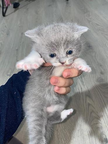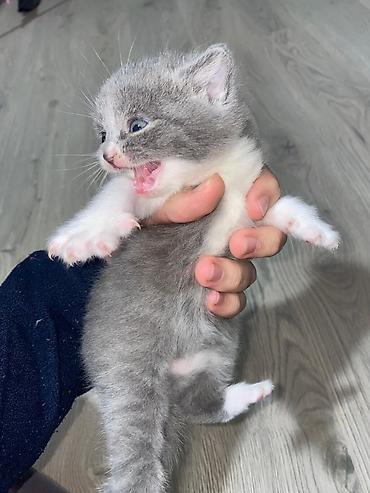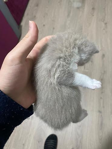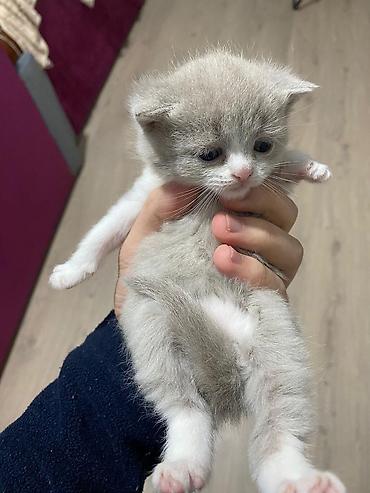 Boz-ağ rəngli, mavi gözlü balaca pişik balası. Xəz örtüyü sıx və yumşaqdır, patilərində və sinəsində ağ naxışlar var. Qısa, tüklü quyruq, çəhrayı pəncə yastıqları və balaca ağız-burun hissəsi ilə çox şirin görünüşə malikdir. Aktiv, maraqlı və insanla təmasa açıqdır; qucağı sevir, oyuna tez qoşulur. Ev şəraitinə uyğun, ailələr və uşaqlarla mehriban yoldaş heyvanı ola bilər.