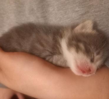 Balaca cins pişik balaları - Rənglər: boz-ağ (maskalı naxış), ağ-qəhvəyi zolaqlı - Yaş: təxminən bir neçə həftəlik (süd dişləri, məməli dövrə yaxın) - Xüsusiyyətlər: - Çox mehriban və qucağı sev...