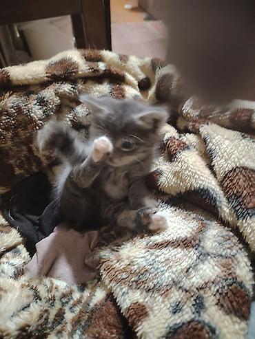 Sevimli boz-ağ bala pişik - Yaş: təxminən 4 aylıq - Rəng: boz kürk, ağ pəncələr və sinə, üzündə ağ maska - Xasiyyət: oyunbaz, mehriban, insanla ünsiyyəti sevir - Aktivlik: oyuncaqlarla oynamağı xo...
