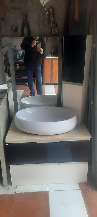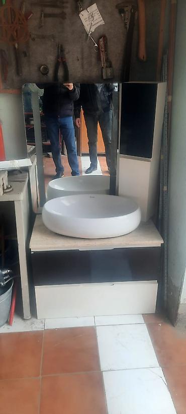 Qiymət razılığına gəlmək olar Müasir vann otağı üçün lavabolu şkaf dəsti - Üstəqoyma keramik lavabo: oval və ya düzbucaqlı variantlar - Konsole şkaf: yumru künclü, iki qapılı, gizli tutacaqlar - ...