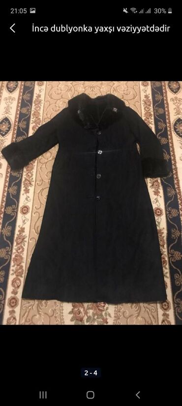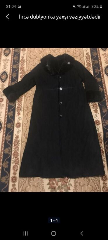 100 manata alinib 1 defe geyinilib - Klasik dizayn: ikicərgəli düymələr, geniş döş qapaqları (revers), beldə çıxarılan kəmər - Fit: diz-altı/uzun kəsim, bel vurğulayan siluet - Ciblər: yanlarda 2 ...