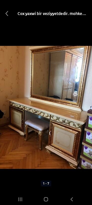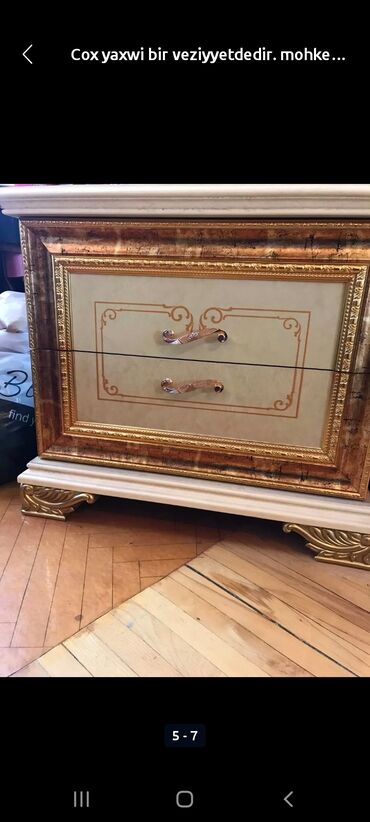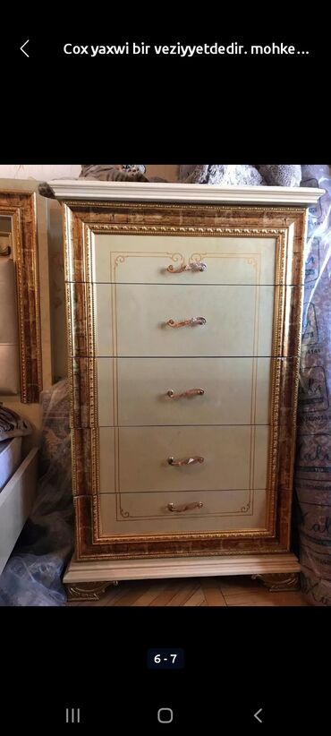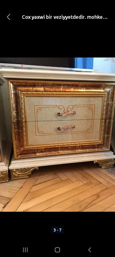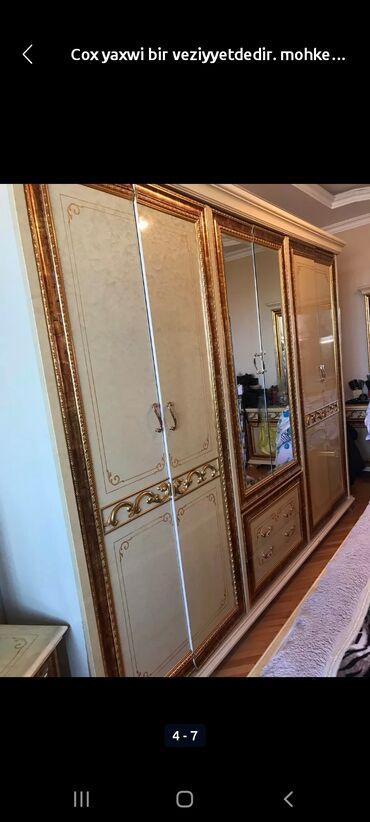 Yataq otağı mebel dəstləri Tərkibi: - Taxt 200×160 - 4 qapılı şkaf, güzgülü bölmələr, daxili rəf və asılqan yerləri (ölçü: 200×160×47) - Tumba 45×40 (2 əd.) - Termo/komod 120×145×38, güzgülü - Baş...