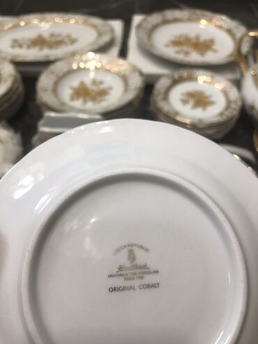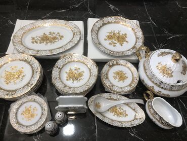 Alman çini istehsalçısı olan Royal Privileged Porcelain Factory Tettau- brendindən gözəl nahar dəsti. Qablar istifadə edilməyib və çox gözəl saxlanılıb. 12 nəfərlik cəmi 63 ədəd Zərif ağ porselanda...