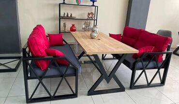 Qara metal çərçivəli, bənövşəyi rəngli oturacağı və kürəyi olan yeni stul. Stul, oturacağı və kürəyi üzərində naxışlı parçası ilə zərif görünüşə malikdir. Qonaq otağı, mətbəx və ya ofis kimi müxtəl...