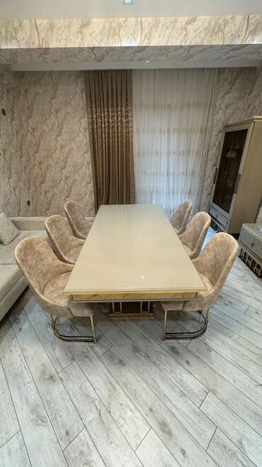 - Dəst: geniş düzbucaqlı yemək masası və 6 ədəd kreslo tipli stul