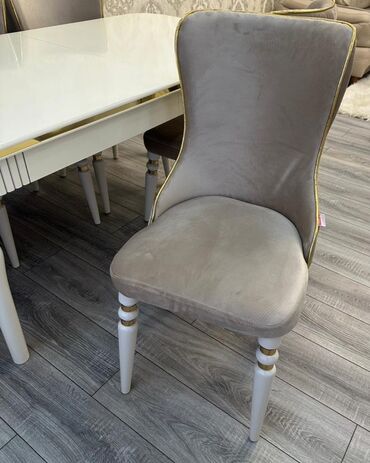 - Stullar: 6 ədəd, bej/şampan rəngli məxməri üzlük, arxa hissədə romblı tikişlər və qızılı kənar haşiyə. Arxa söykənəcəkdə qızılı emblem işləməsi. Ağ rəngli zərif ayaqlar.