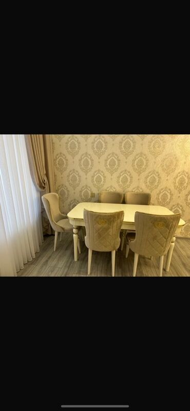 Yemək otağı üçün zərif masa və 6 stul dəsti