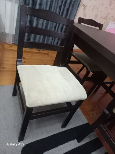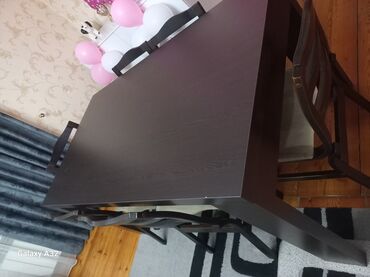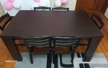 - Komplekt: masanın ətrafında 6 stul yerləşir; masa üstü geniş olduğundan 6 nəfər rahat sığır.