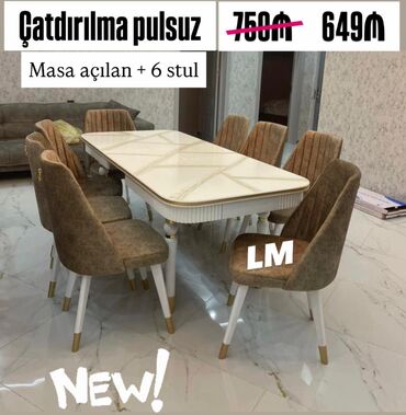 EndirimsizYemək otağı dəsti – açılan masa + 6 stul