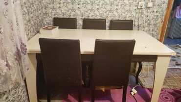 Mətbəx üçünAğ rəngli yemək masası və 6 ədəd stul dəsti.