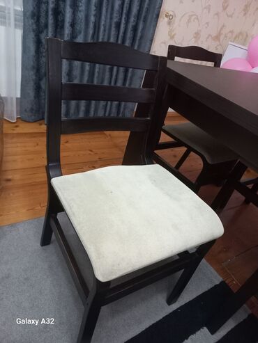 - Material: taxta karkas, qalın və möhkəm üst səth; stullar taxta çərçivəli, yumşaq süngər/parça oturacaq