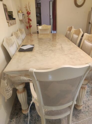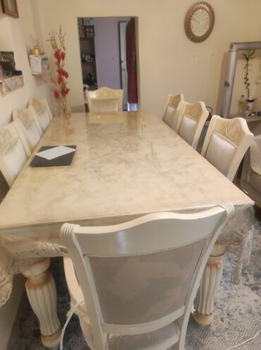 Klassik üslubda böyük yemək masası və 8 ədəd stul dəsti. İşlənmiş
