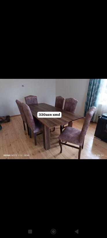 Qonaq otağı üçün, Yeni, Açılmayan, Dördbucaq masa, 6 stul