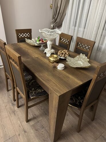 Yemek stolu. 6 nəfərlik. 2 siyirmeli tunbuçkalı. 45 manat. Ünvan Xalqlar dostluğu. Siyaqut şadlıq sarayının yanı. Çox möhkəmdir bərkdir. Qəti terpenme silkelenme yox