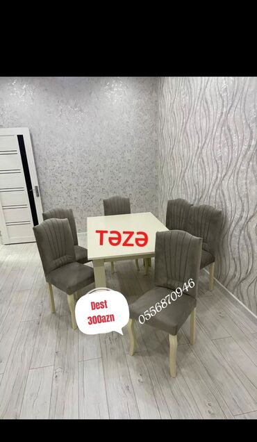 - 6 ədəd yumşaq arxalı, düymə naxışlı stul