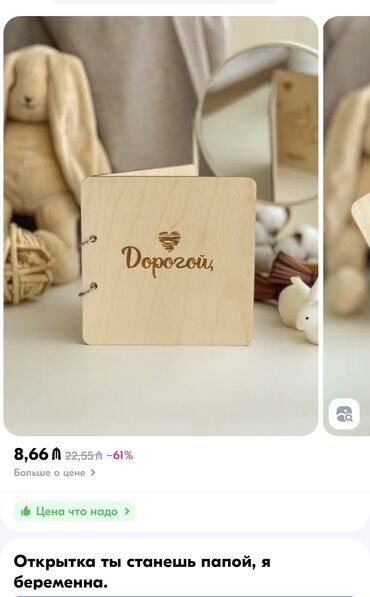 Продаю открытку , она из дерева . Запечатана !!! Новая!!! Туда нужно вклеить ваше узи малыша и сообщить мужчине о беременности