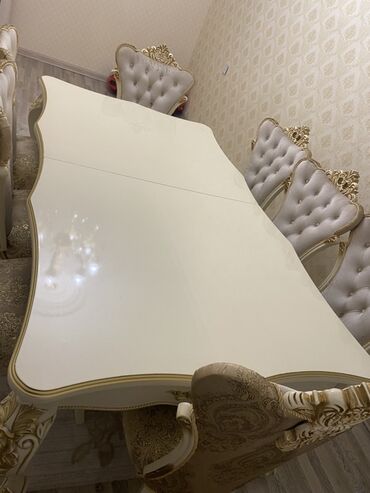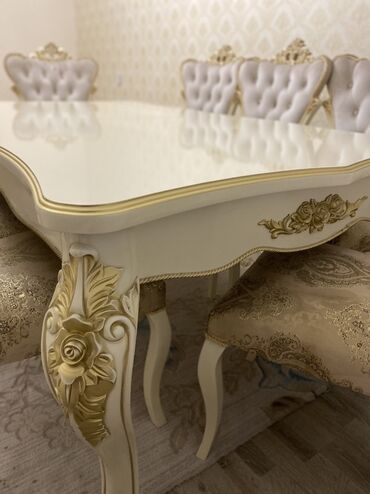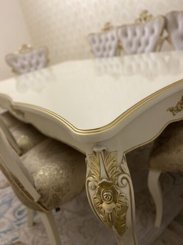 Klassik üslubda dəbdəbəli yemək masası və stul dəsti.