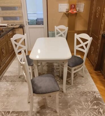 Ağ yemək dəsti – masalı və 4 stullu