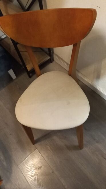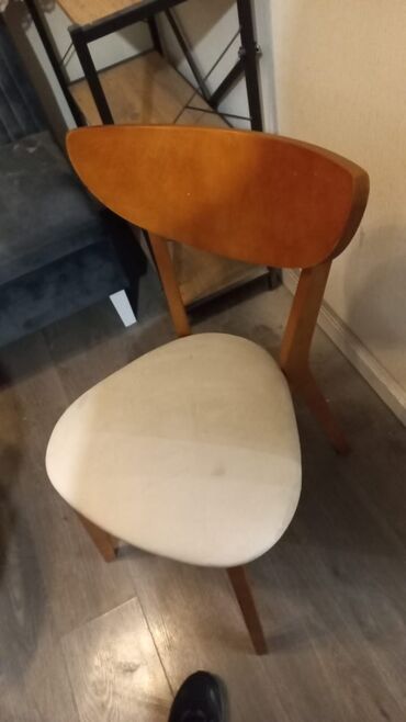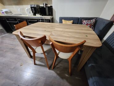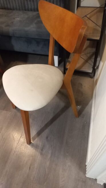 - 4 ədəd stul – təbii ağac rəngində karkas, enli kürəklik, açıq rəngli yumşaq oturacaq.