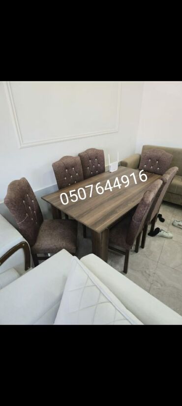 Qonaq otağı üçün, Yeni, Açılmayan, Dördbucaq masa, 6 stul