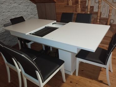 - 6 ədəd stul: ağ karkas, qara yumşaq oturacaq və arxalıq.