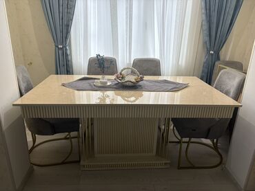 - Masa: böyük ölçülü dikdörtgen forma, 6 nəfər üçün rahat