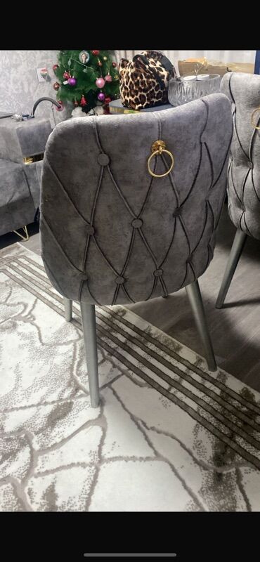 - Stullar: yumşaq oturacaq və bel hissəsi; ön tərəfdə şaquli tikişlər, arxa hissədə kapitone (romb) naxış; arxada dekorativ qızılı halqa; taxta ayaqlar, bəzəkli boğumlar və qızılı detallar