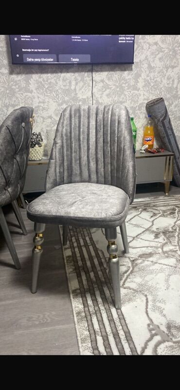 - Material: parça üzlüklü stullar, möhkəm konstruksiya; masada parlaq örtüklü səth