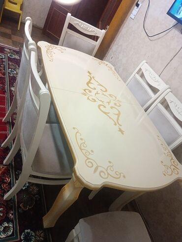 Qonaq otağı üçün, Yeni, Açılmayan, Dördbucaq masa, 6 stul