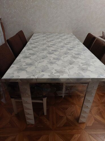 - Üst səth: düz və geniş, üzərində şəffaf naxışlı örtük (süfrə) görünür