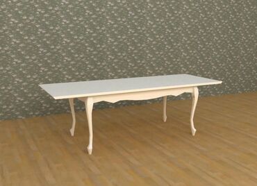 - Masa: Uzun düzbucaqlı üst lövhə, incə oyma detallı, balerin tipli əyri ayaqlar. 6-10 nəfərlik rahat oturma imkanı.