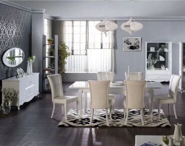 Yemək otağı mebel dəsti. Bellonanindir. Mdf-dir. Acilan stol, 6stul, vitrin ve komod. Islenib yaxsi veziyyetdedir. Hazirda mebel sokulu veziyyetdedir. Unvan ecemi