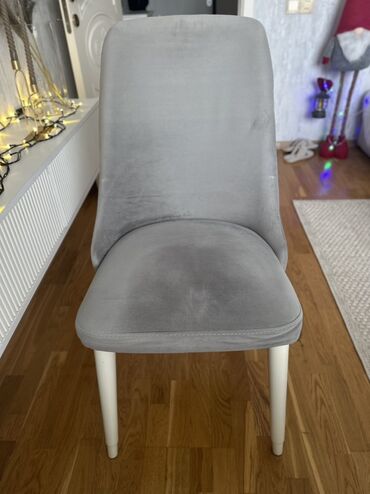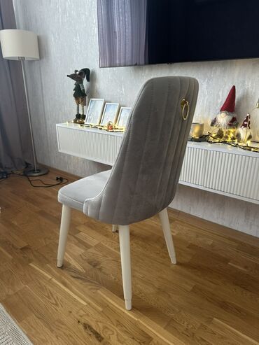 Mətbəx/yataq otağı üçün müasir yemək stulları –4 ededdir. - Rəng: boz (yumşaq, məxməri effektli parça) - Parça: toxumalı yumşaq döşəmə, asan təmizlənən, oturacaq və arxa hissə tam süngərlidir - D...