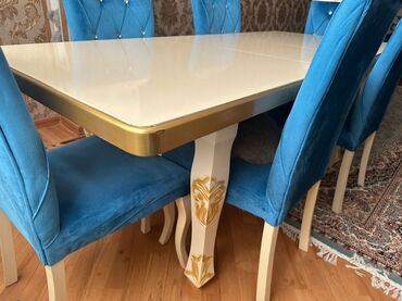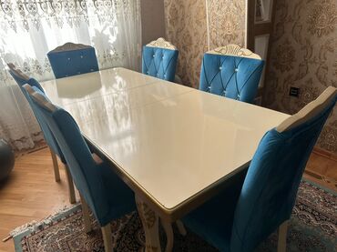 Qonaq otağı üçün, İşlənmiş, Açılmayan, Dördbucaq masa, 6 stul