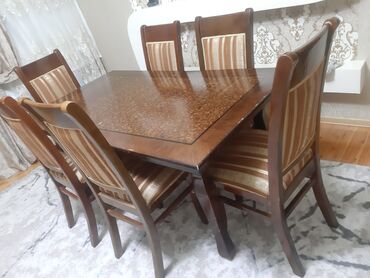 Qonaq otağı üçün, Yeni, Açılmayan, Dördbucaq masa, 6 stul