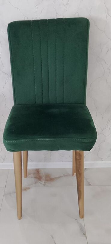Klassik üslubda taxtalı yemək otağı stulları - Rəng: tünd yaşıl - Arxa hissə: yumşaq velür parça, kapitone tikiş və dekorativ düymələr - Üst hissə: qızılı rəngli oyma taxt başlıq - Oturacaq: naxış...