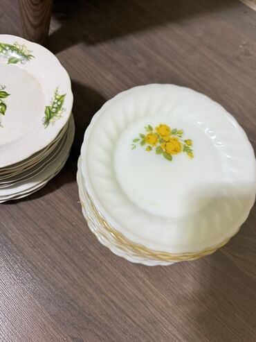 Qədimi qablar. Dəstdə boşqablar tam deyil.11 eded kicik ve boyuk bosqabı,1 eded dovğa qabı,1 eded aş qabı,1 ədəd də digər qab. Material farfor. Qiymət-500 azn. Real alıcıya bir az endirim olunacaq