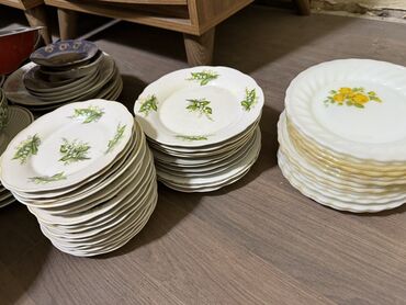 Şüşə yemək qabları dəsti. Dərin qablar 3 ədəd . Boşqab 10 ədəd . İkisi bir yerde 70 azn. Tek 10 ədəd boşqab 50. Tek dərin qab 3 ədəd 15 anz