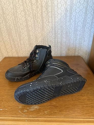 Kişi ayaqqabısı – qara, dəridən (koja) yüksək model. - Razmer: 44 - Boğazayaq (yarımçizmə) tipli, bağlama üçün dəlikli dizayn - Yan hissədə fermuar – geyinib-soymaq rahatdır - Qalın rezin altlıq, g...