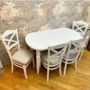 Ağ rəngdə yemək masası və 4 ədəd stul dəsti 190Azndən.
