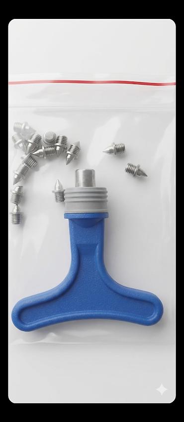 - Dəst tərkibi: mavi plastik üçtərəfli açar (Handle 1) və dəyişdirilə bilən metal tikanlar
