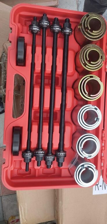 Bu dəstə müxtəlif ölçülü adapterlər və hər biri yivli şafta malik dörd sıxma aləti daxildir. Dəst qırmızı plastik qutuda səliqəli şəkildə yerləşdirilib, bu da saxlama və daşıma üçün əlverişlidir. Hər bir adapter və sıxma aləti müxtəlif avtomobil təmir işlərində, xüsusilə də yataqların və ya digər komponentlərin çıxarılması və quraşdırılması zamanı istifadə üçün nəzərdə tutulmuşdur. Dəst avtomobil sexi və ya fərdi istifadə üçün ideal seçimdir.