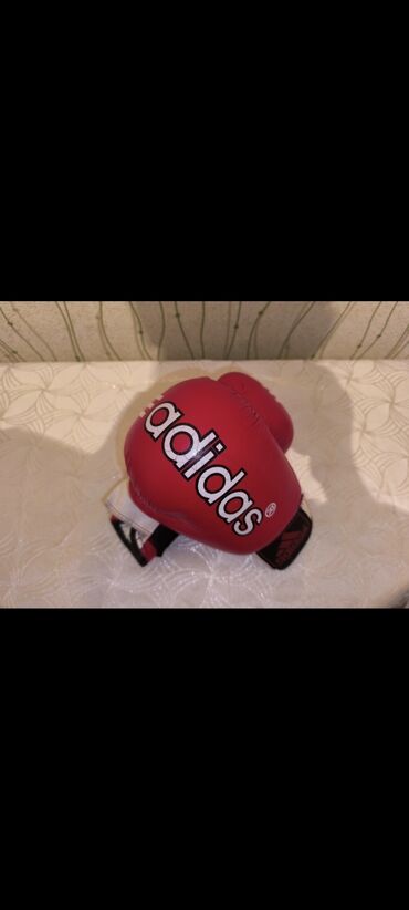 Məhsul: Boks əlcəkləri – Adidas, qırmızı - Rəng: Parlaq qırmızı, üstündə ağ “3 zolaq” dizaynı və Adidas loqosu - Material: Sintetik dəri (asand silinən və davamlı) - Bağlanma: Bilək hissəsində gen...